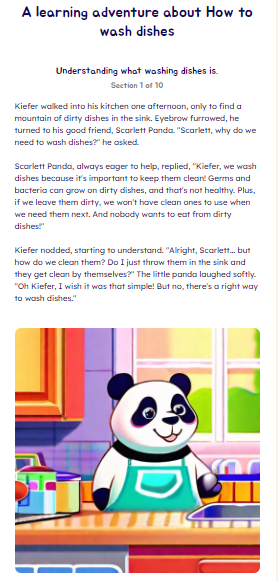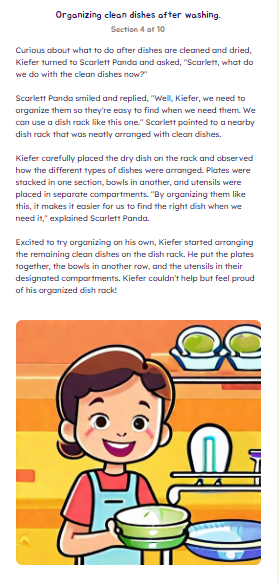 Learning Adventure Stories help transform your everyday chores into engaging and enjoyable experiences! Whether you're teaching them household tasks like brushing teeth, caring for a pet, doing dishes, or fostering respect for others, our Learning Adventure Stories can make these lessons interactive and valuable at the same time.